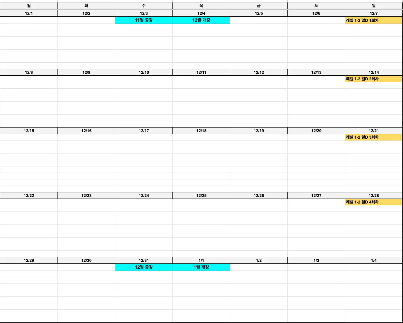 다음 달 수업 스케줄과 보강 수업 규정을 안내드립니다.