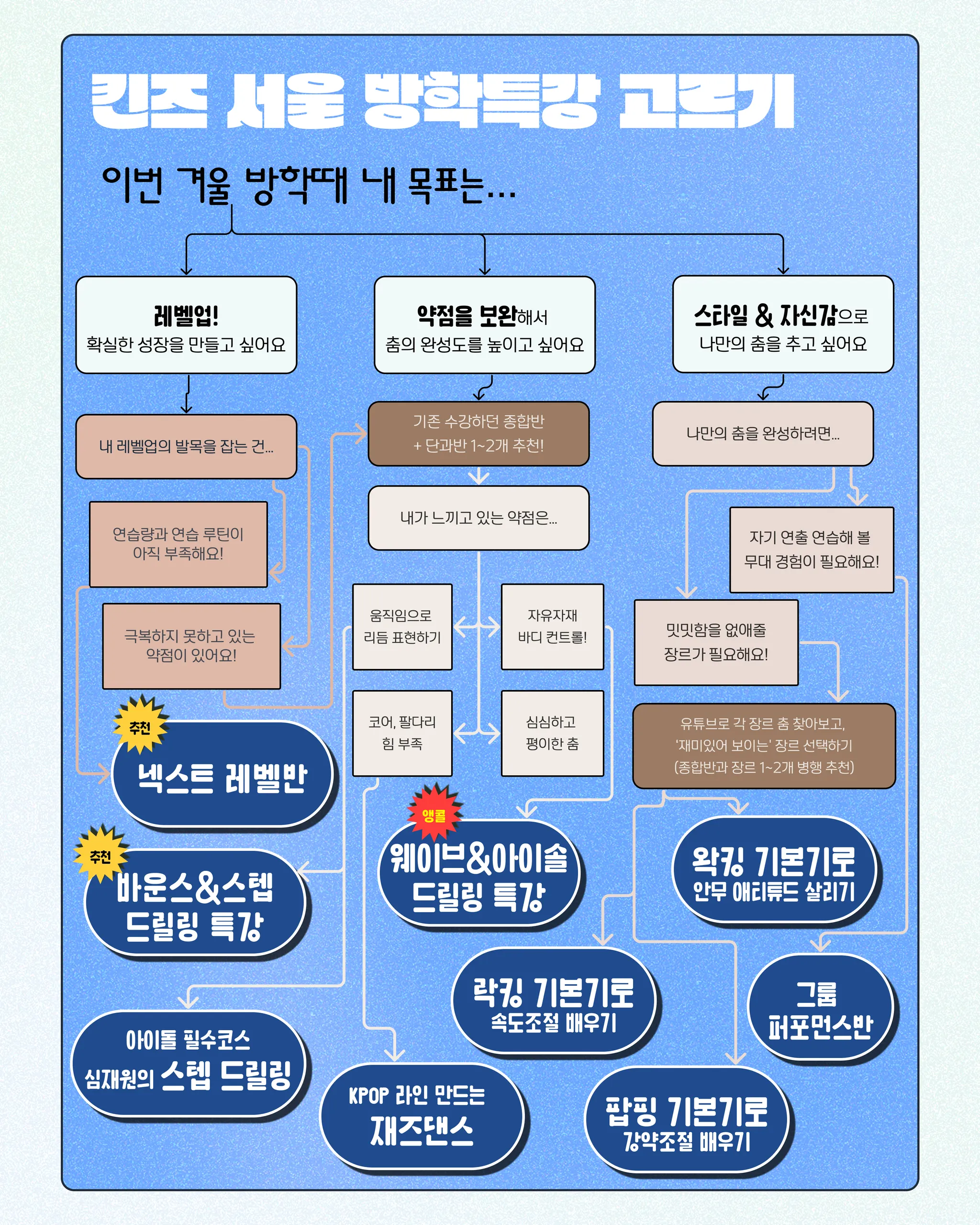 이제는 ‘즐기는 단계’를 넘어 ‘실력’으로 증명할 때입니다. 단순히 안무 순서만 외우는 것이 아니라, 퍼포머로서의 움직임을 이해하고 내 것으로 만들기 위해서는 겨울방학의 집중적인 트레이닝이 필수적입니다.