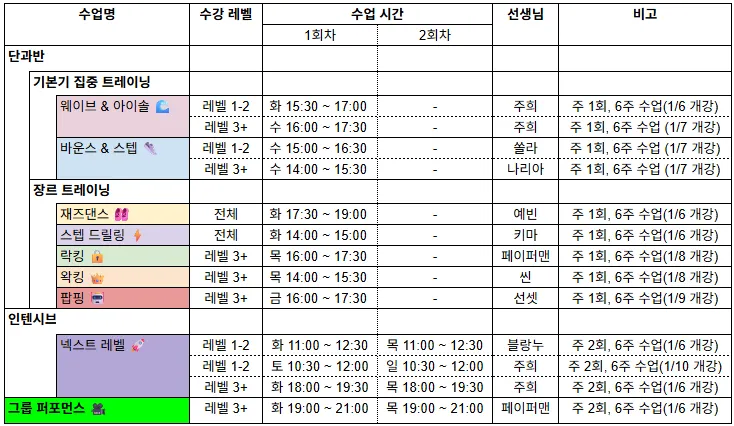 따뜻한 봄, 새 학기가 시작되었을 때 완전히 달라진 춤선과 자신감을 가질 수 있도록 체계적인 커리큘럼을 준비했습니다.