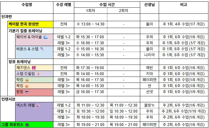 (수업 선택 후, 아래 세부 내용 꼭! 확인하세요)