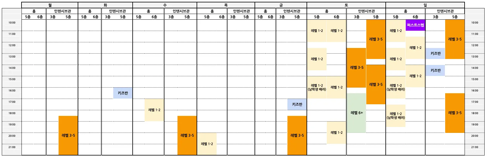 매월 업데이트 되는 킨즈 서울 전체 시간표 입니다.