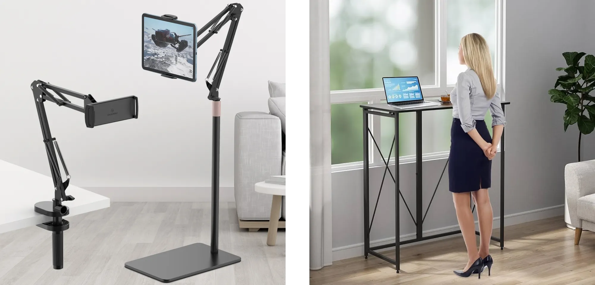 태블릿 거치대, 키다리 책상 등을 사용하면 편리합니다.